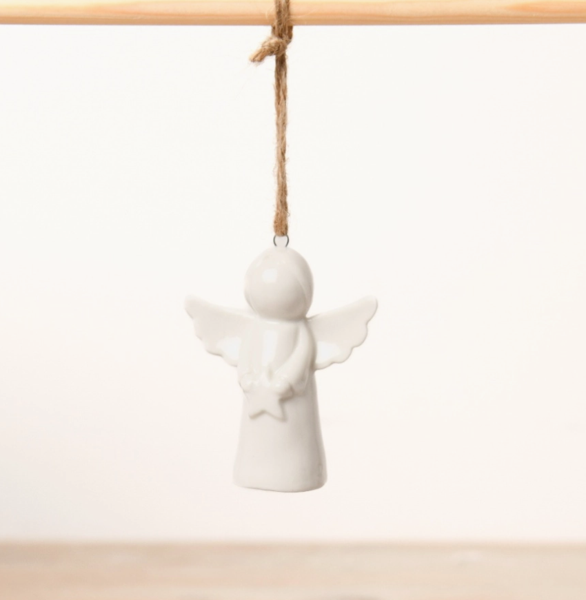 Un adorable ange miniature avec des ailes et une étoile. Accrochez cet ornement angélique près d’une fenêtre ou sur votre sapin de Noël.