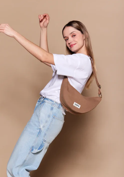 En forme de demi-lune, le sac Andrea est à mi-chemin entre la banane et la besace.