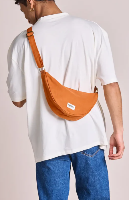 En forme de demi-lune, le sac Andrea est à mi-chemin entre la banane et la besace.