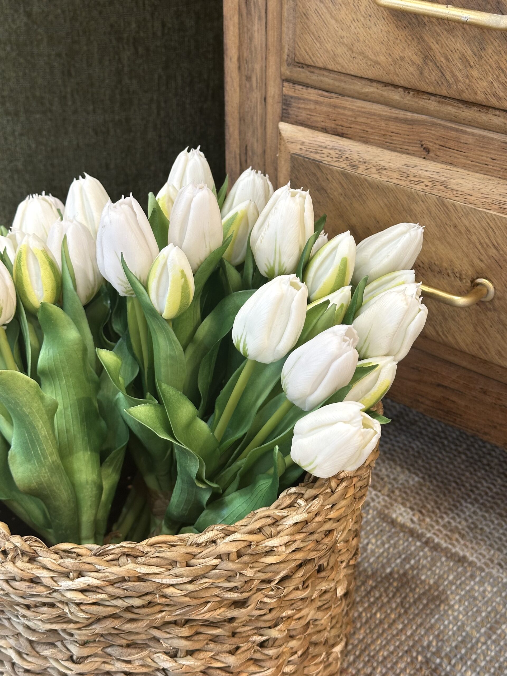 Cette botte (5 tiges) de tulipes blanches est conçue pour imiter à la perfection une fleur fraîche. Avec ses pétales délicatement texturés et ses nuances naturelles, elle offre une illusion saisissante.