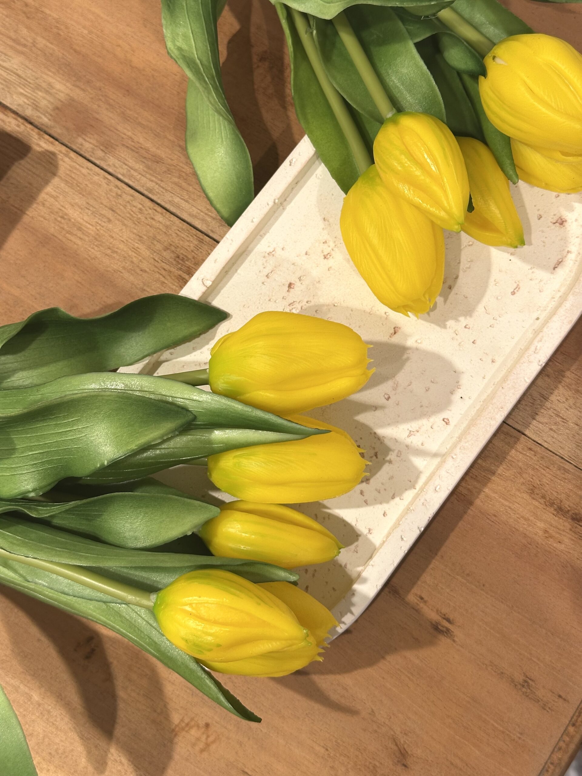 Cette botte (5 tiges) de tulipes jaunes est conçue pour imiter à la perfection une fleur fraîche. Avec ses pétales délicatement texturés et ses nuances naturelles, elle offre une illusion saisissante.