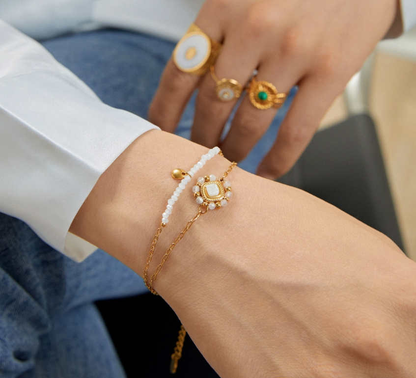 Bracelet multi rangs en acier inoxydable résistant à l’eau.