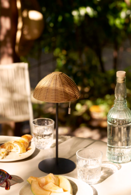 Cette lampe LED associe avec élégance des matériaux naturels et un design moderne. Son abat-jour tressé diffuse une lumière douce et chaleureuse, créant une ambiance cosy idéale pour un salon, une chambre ou en extérieur.