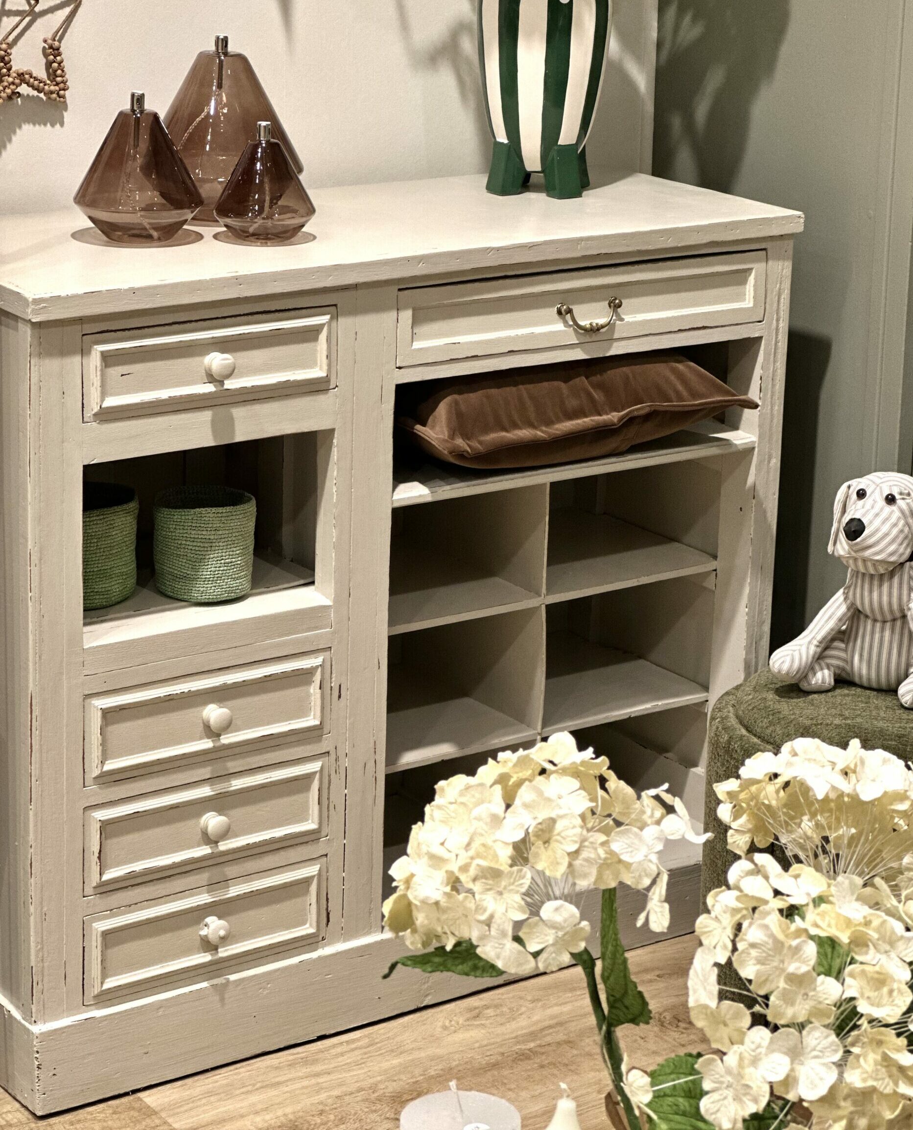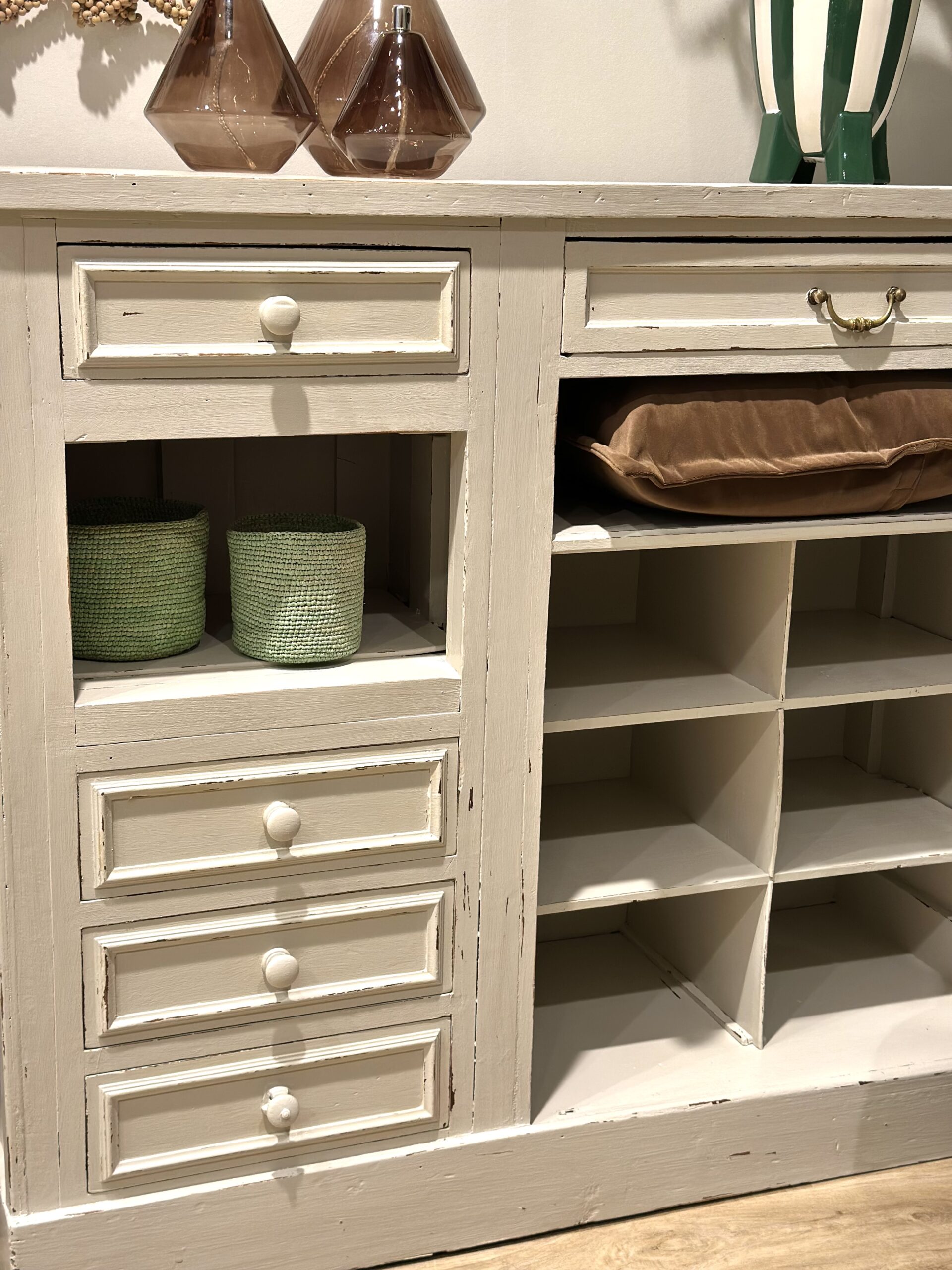 Apportez du charme et de la praticité à votre intérieur avec ce buffet repeint. Son design authentique et ses finitions légèrement vieillies lui confèrent un aspect chaleureux et intemporel, idéal pour une décoration campagne chic ou bohème.