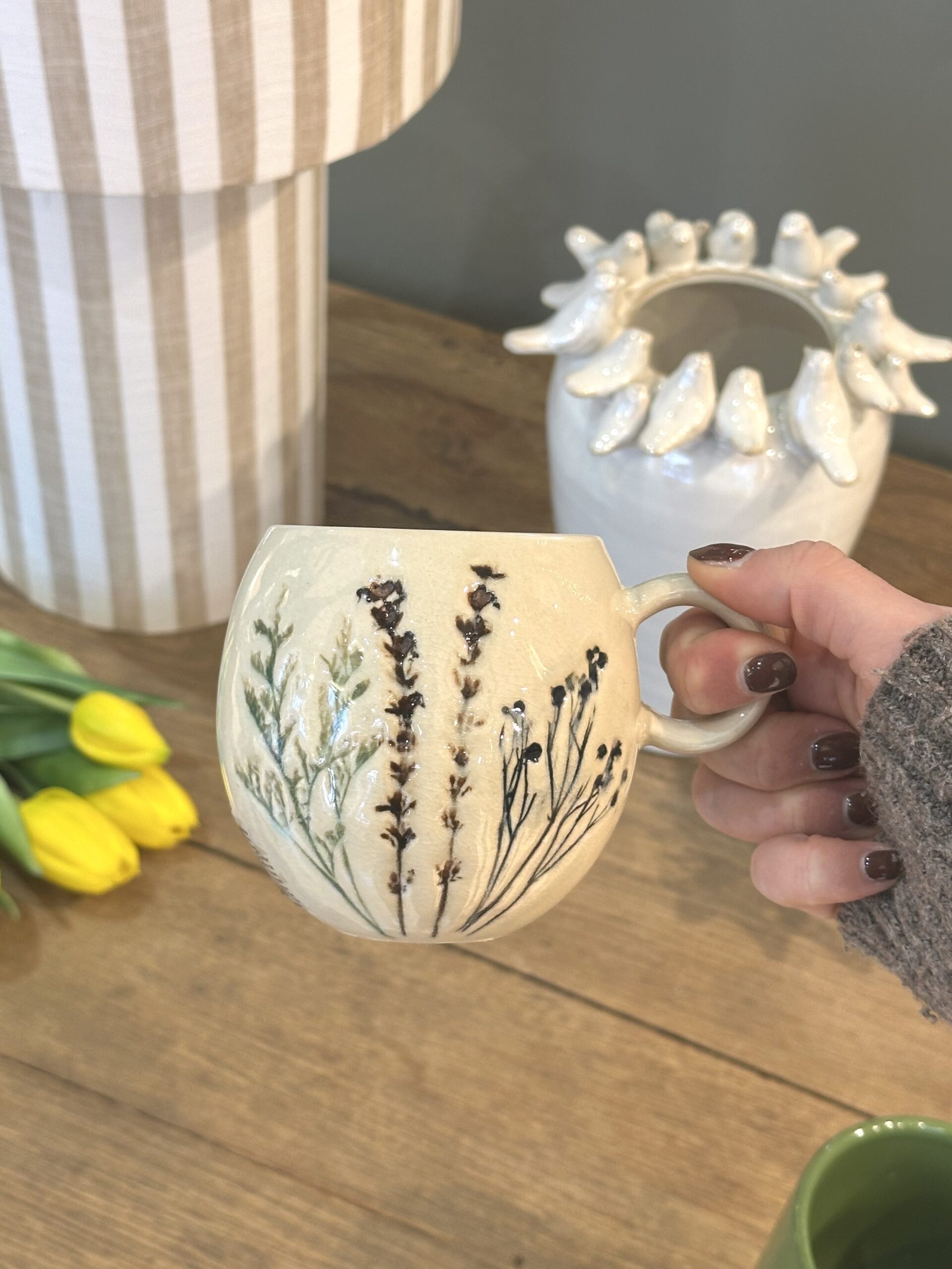 Le mug Bea est en grès, doté d’un motif floral délicatement peint à la main, imprimé sur sa glaçure craquelée.