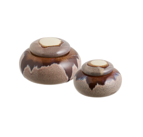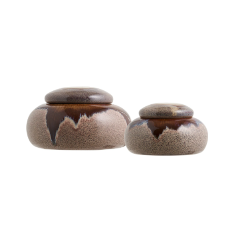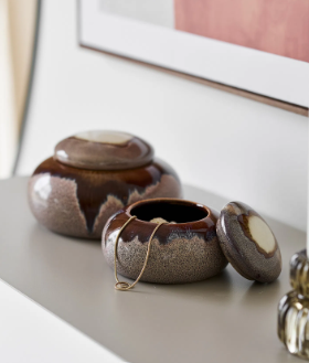 Un vrai coup de cœur pour ce pot en céramique fait main, sublimé par une finition émaillée aux teintes naturelles de brun et de beige. À la fois décoratif et pratique, il est parfait pour y ranger vos accessoires ou vos bijoux.