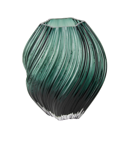 Ce vase en verre vert séduit par son design fluide et organique, inspiré du mouvement naturel des vagues.